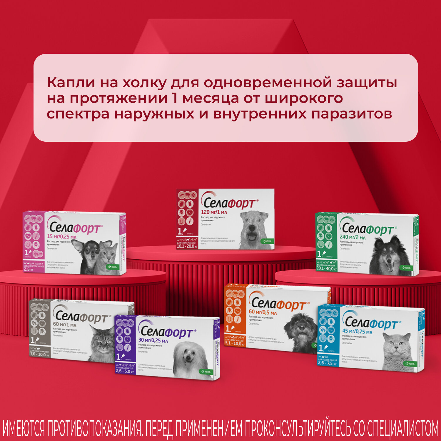 | Состав | селамектин - 60 мг/мл и 120 мг/мл и вспомогательные вещества |