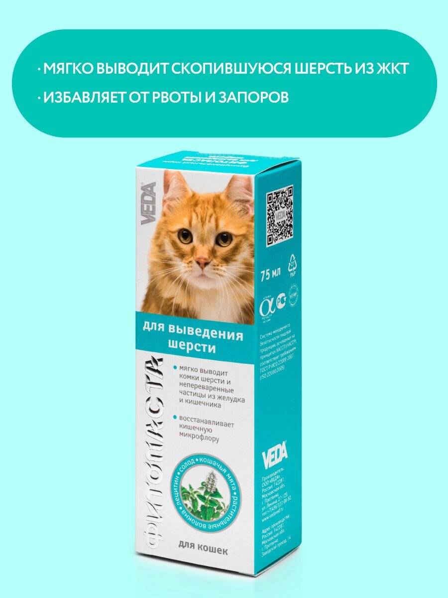 Паста для выведения шерсти для кошек и хорьков ВЕДА , 75 мл