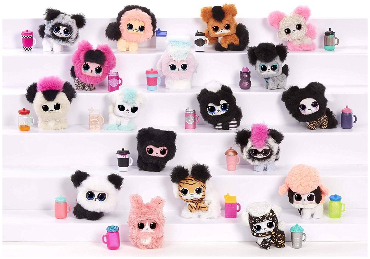 В коллекции LOL Surprise Winter disco Fluffy pets 18 персонажей из разных клубов. У каждой фигурки своя внешность и одна или две способности. Чтобы узнать, какой способностью обладает питомец, нужно напоить его водой из бутылочки.