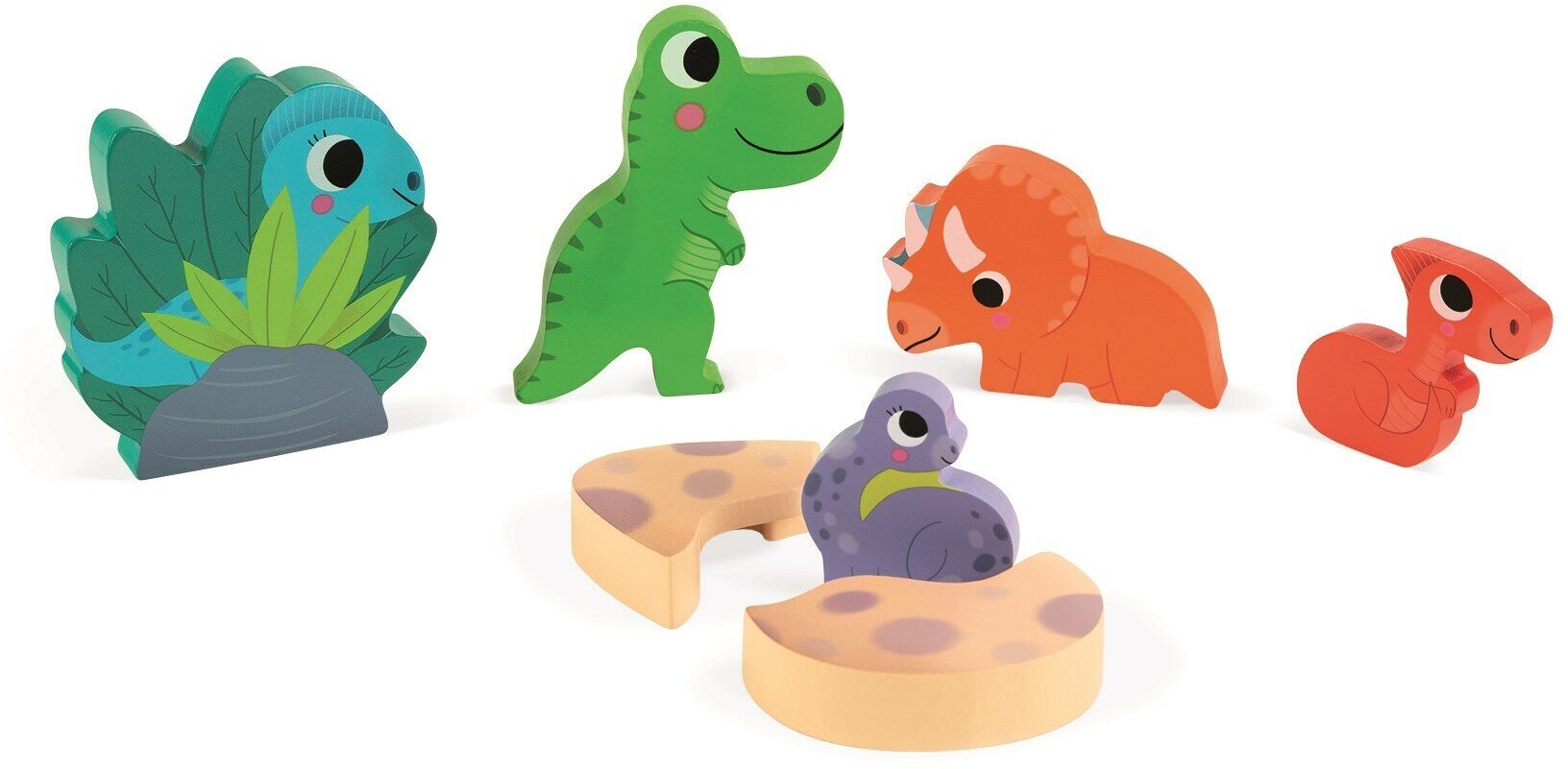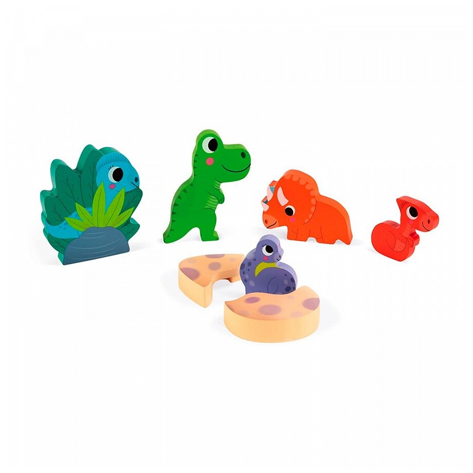 Пазл-вкладыш с сюрпризом Найди динозавра 6 элементов арт. Janod Пазл-вкладыш с сюрпризом Найди динозавра 6 элементов