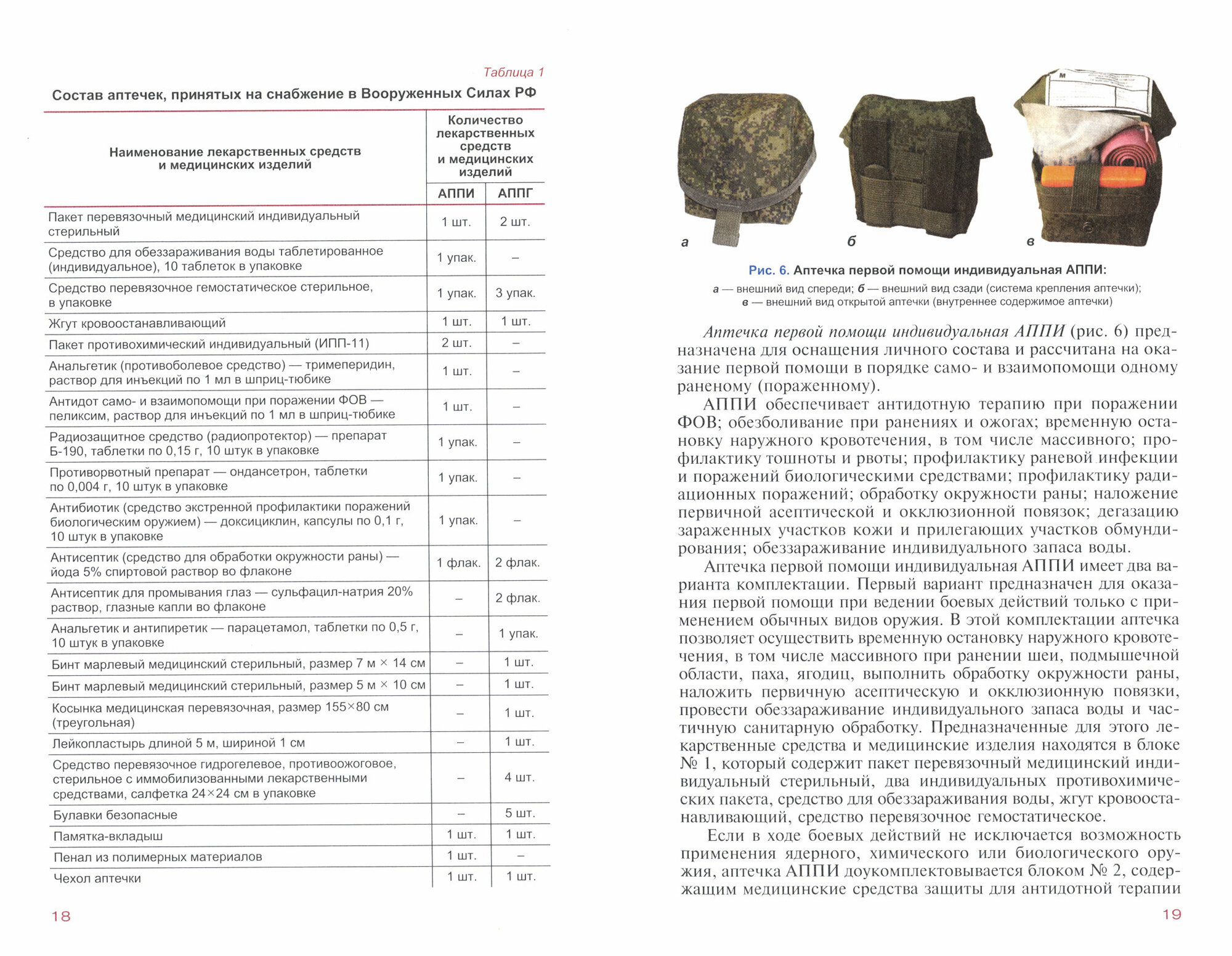 Первая глава рассказывает о медицинских средствах защиты; целях, задачах, основных мероприятиях медицинской защиты; медицинских средствах профилактики и оказания неотложной помощи при химических и радиационных поражениях. В общем-то глава рассказывает о базовых и фактически классических вещах, описанных во множестве источников. Тем не менее встречаются достаточно спорные и странные утверждения относительно профилактических мер в зоне возможного радиационного загрязнения (например, относительно йодида калия, а так же относительно так называемых адаптогенов и поливитаминов... особенно при дозе практически в 0.5 - 1 Грей и выше...).