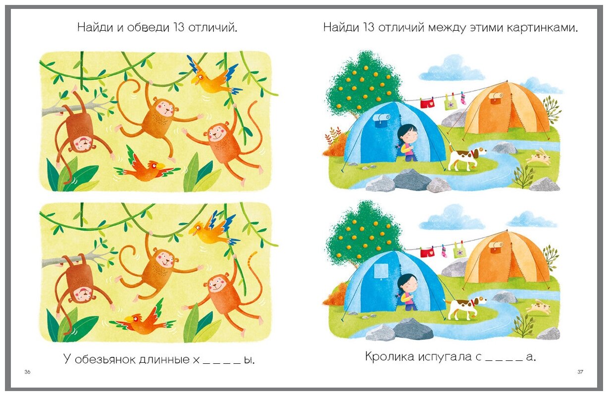 В этой книге собрано 56 увлекательных заданий, в которых нужно найти и посчитать отличия между картинками, а также выполнить задания на счет и на письмо.