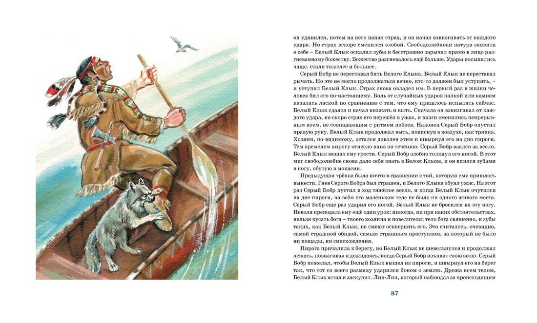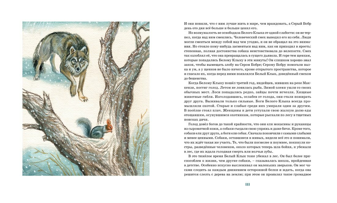 "Приключенческая повесть классика американской литературы Джека Лондона описывает события, которые происходят во время золотой лихорадки на Аляске. Её главный герой – Белый Клык, полуволк-полусобака. Жестокий и суровый мир, который окружает его с рождения, грозит неминуемой гибелью, и только встреча с добрым хозяином становится для Белого Клыка спасением. Эта книга о всепобеждающей силе любви, верности и преданности, о настоящей дружбе, какая только возможна между животным и человеком."