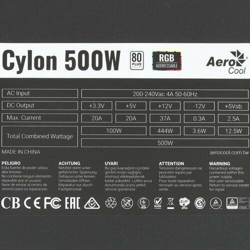 Блок питания Aerocool Cylon 500W