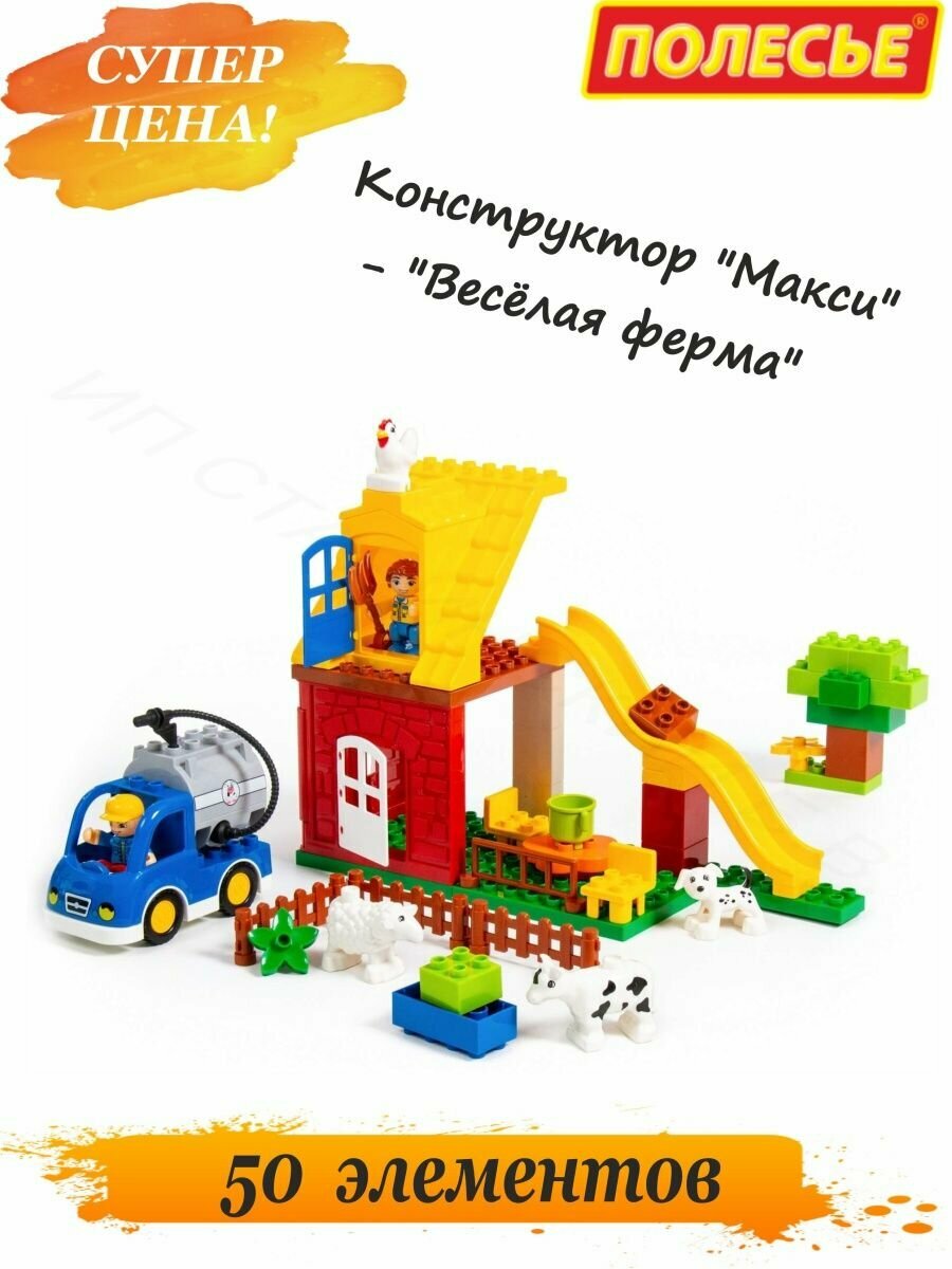 Конструктор Polesie Макси Веселая ферма в коробке 50 элементов (77578)