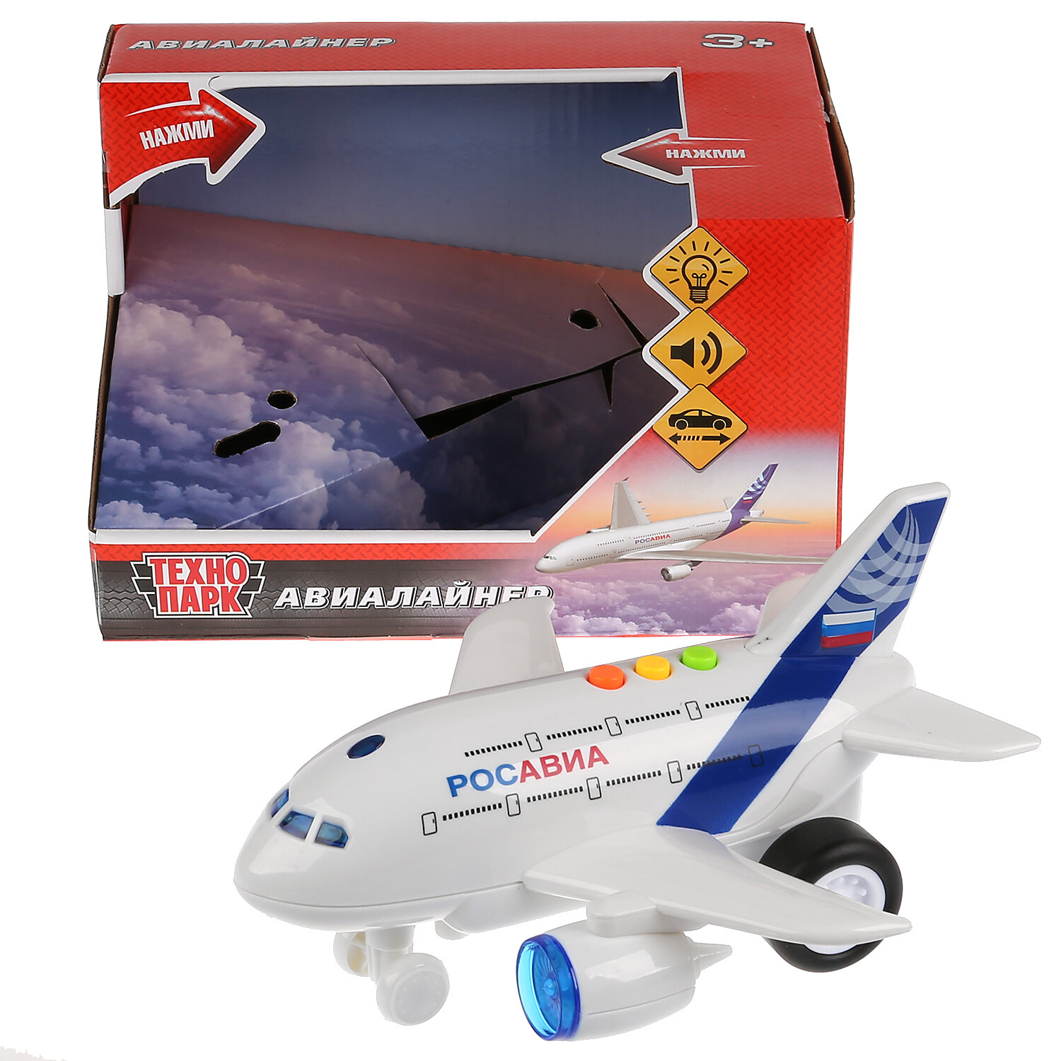 Игра с авиалайнером ТМ «Технопарк» тренирует координацию движений, внимание, ловкость, знакомит вашего юного автолюбителя с видами транспорта.