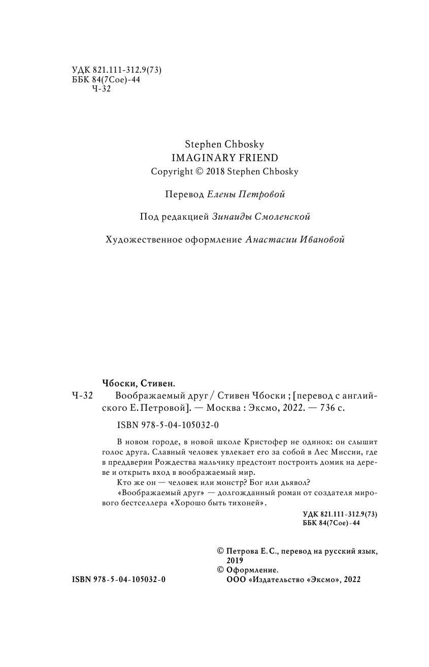 Книга: Воображаемый друг (Стивен Чбоски); Эксмо, Редакция 1, 2022
