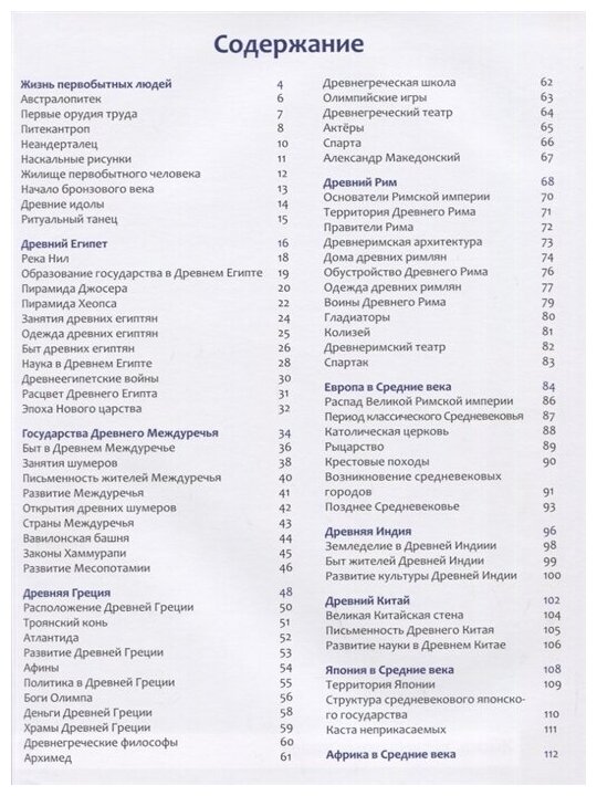 Самая отвратительная книга из всей серии. большие красочные картины и очень урезанное описание. Не смотря на то что история здесь заканчивается на средних веках и даже мельком упоминается Япония, Китай, Индия автор напрочь игнорирует восточную цивилизацию. Ни слова про Восточно-Римскую империю и её наследницу Византию, разделение церквей, за то про католическую церковь целая статья. О том что в средние века существовала еще и Древняя Русь, правопреемница византийской церкви, после её окончательного краха. Нет Османской империи, уничтожившей Византию. Про Саманидские, Караханидские и другие государства на территории средней азии я вообще молчу. Такое детям давать читать нельзя.