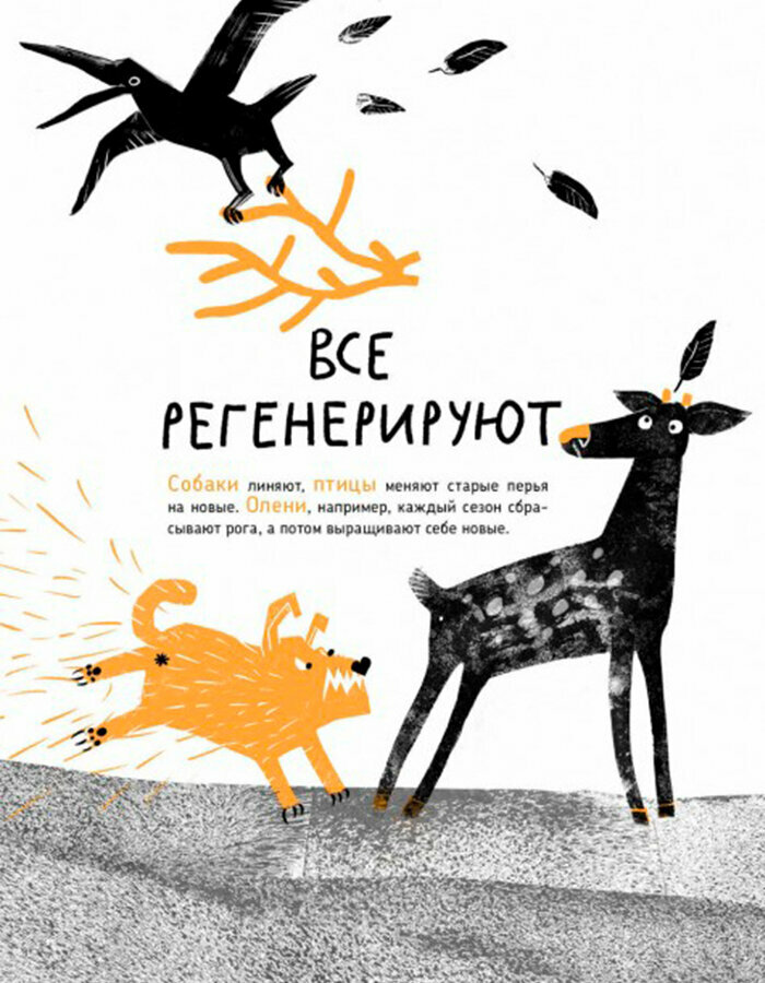 Впрочем, к чему тут выяснение авторства цитат, если в руках у нас прекрасная иллюстрированная книга, написанная профессионалом для будущих профессионалов, многим из которых сейчас нет и 10 лет. Автора, который может и 5 и 8 и 10-летнему карапузу объяснить чем важен, прекрасен и интересен такой процесс, как регенерация и восстановление организма после повреждения.