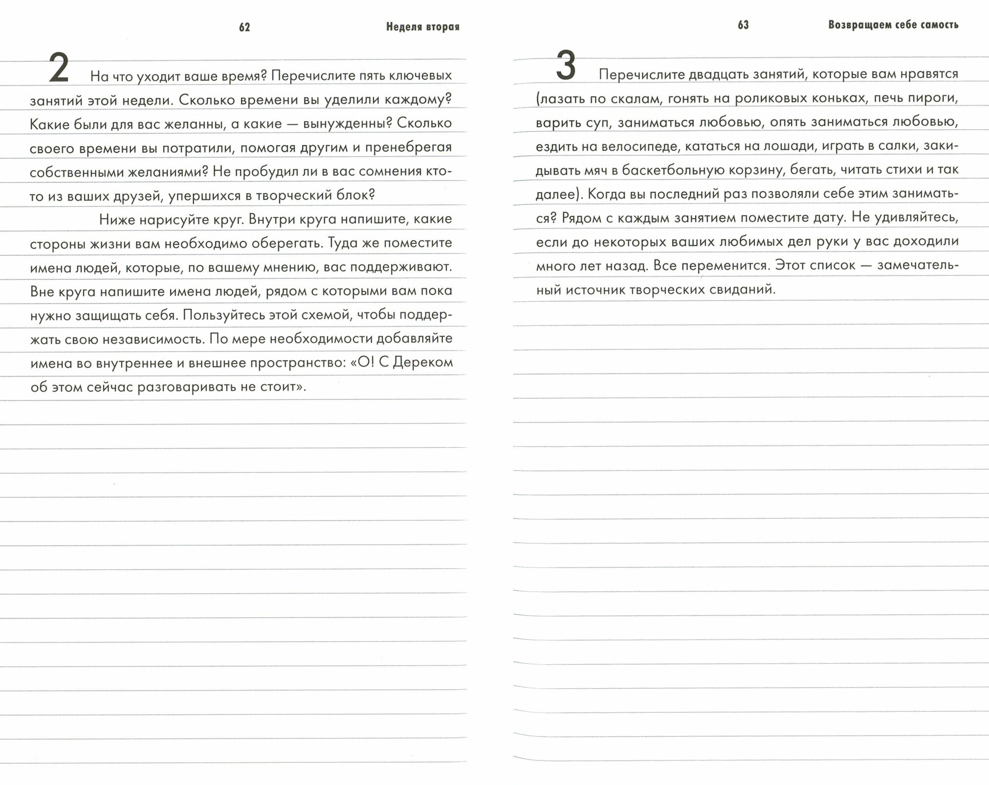Наверное, это хороший вариант для лектора, ведущего кружок по методике Кэмерон, все-таки тетрадь весит меньше, чем первоначальное издание книги. Удобнее носить с собой как напоминалку основных упражнений, чем практиковаться дома, если есть такая необходимость. -
