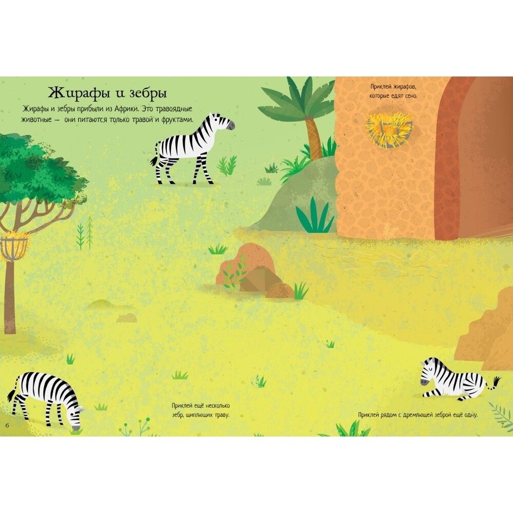 замечательный альбом для изучения с ребенком диких животных. каждая страница посвящена какому-то животному, птице. есть краткая интересная заметка о каждом. наклейки достаточно крупные, маленький ребёнок без проблем сможет удержать в руках и наклеить на страницу. есть небольшие лёгкие задания где что должно быть наклеено. страницы плотные, забавные иллюстрации.