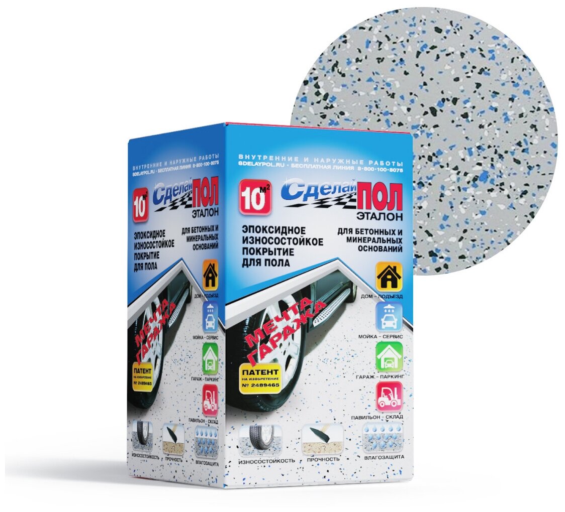 Сделай ПОЛ Эталон - защитный полимерный состав на эпоксидной основе, образует износостойкое, декоративное и долговечное покрытие, а также придает полу антистатические и антискользящие свойства. Готовое покрытие стойкое к воздействию механических нагрузок, появлению пыли и проникновению грязи, масел, воды в подложку.