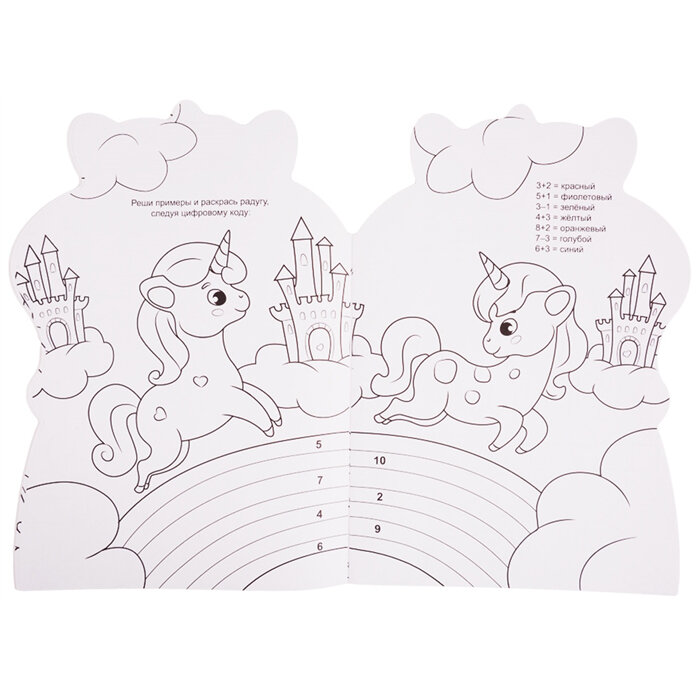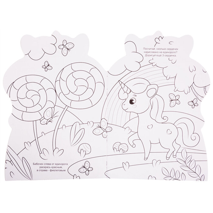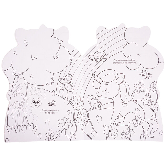Раскраски в форме котёнка, панды, крабика и динозаврика - это не только милые детские рисунки, но и занимательные задания на каждой странице.