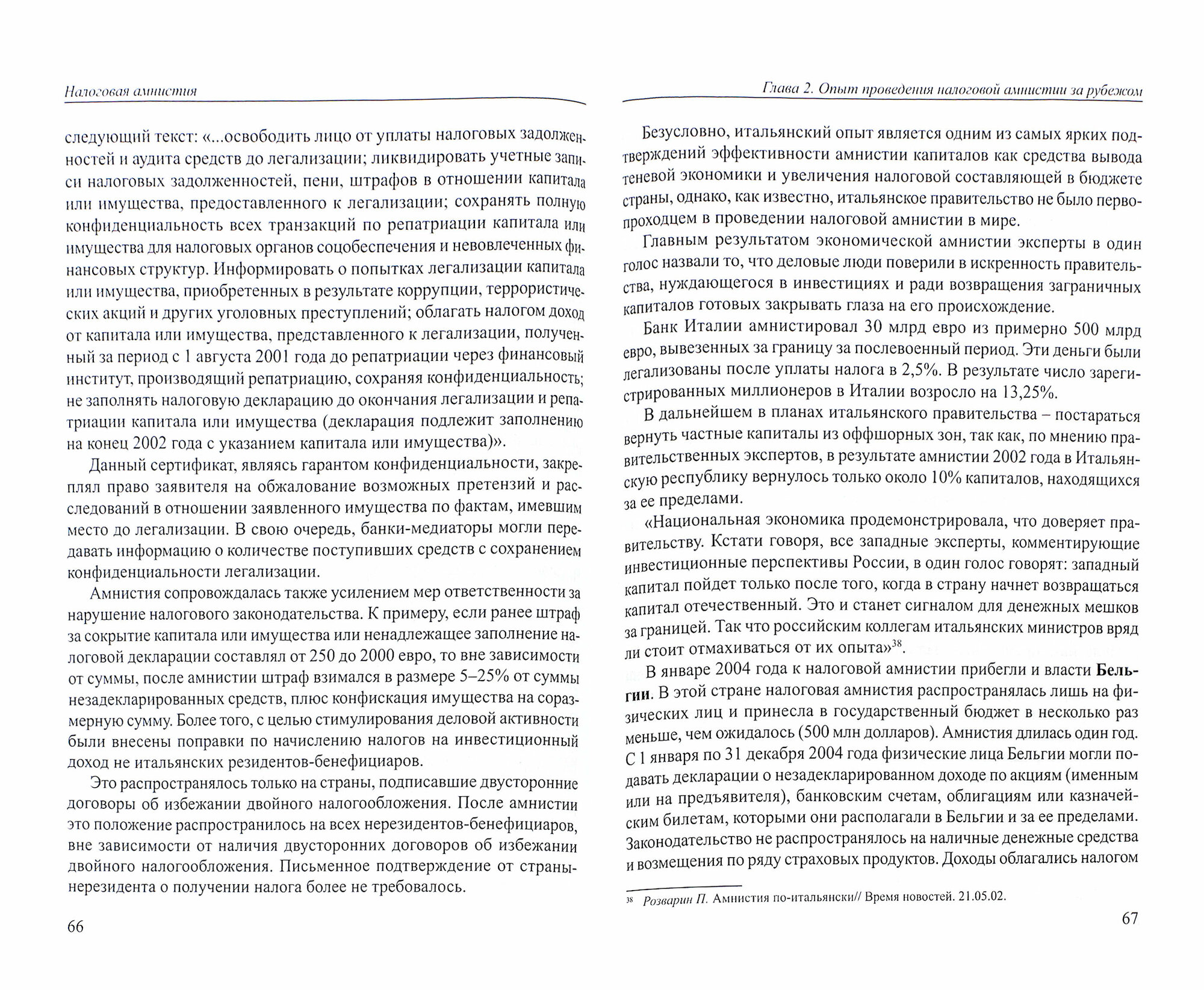 Книга посвящена вопросам проведения налоговой амнистии в России.С понятием "налоговая амнистия" нередко связывают и легализацию капиталов, и экономическую амнистию, и реструктуризацию налоговой задолженности, и еще ряд мероприятий, направленных на снижение налогового бремени и упрощение процедур налогового администрирования. Однако в данной работе приведены "классические" определения налоговой амнистии, экономической амнистии и др. Автором рассмотрен исторический опыт разработки и проведения налоговых амнистий в нашей стране (1993-2007 гг.) Кроме того, проанализирован зарубежный опыт на примере стран СНГ, а также экономически развитых и развивающихся стран мира.В пособии вы найдете ответы на вопросы: какими должны быть условия и порядок проведения амнистии, гарантии власти, рекламная кампания, чтобы в нее поверили и она принесла успех как экономике, так и имиджу государства-инициатора. Вы узнаете, что лежит в основе провальных попыток вернуть неуплаченные налоги или сокрытые денежные средства в бюджет, и многое другое.Книга рассчитана на широкий круг читателей: налогоплательщиков, ученых, сотрудников налоговых и правоохранительных органов, аудиторов, адвокатов, аспирантов и студентов юридических и экономических вузов, специалистов, интересующихся данной проблемой.