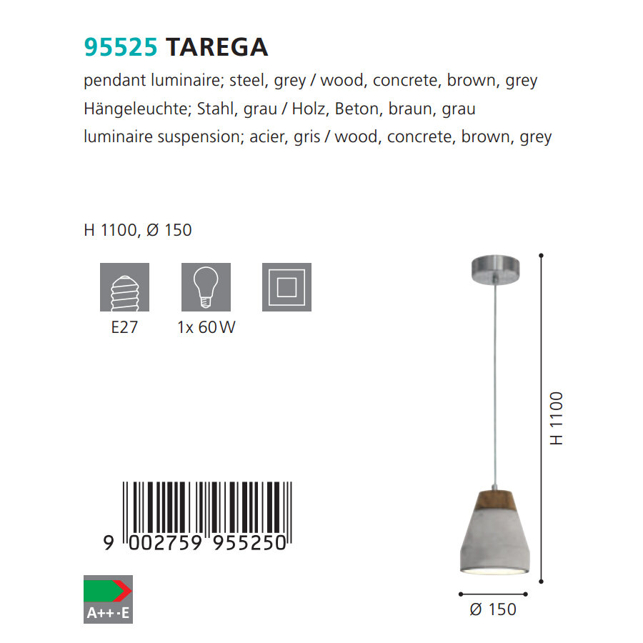 Подвес TAREGA кортичнево-серый E27 1х60 Вт Eglo ПРОМО Tarega 95525