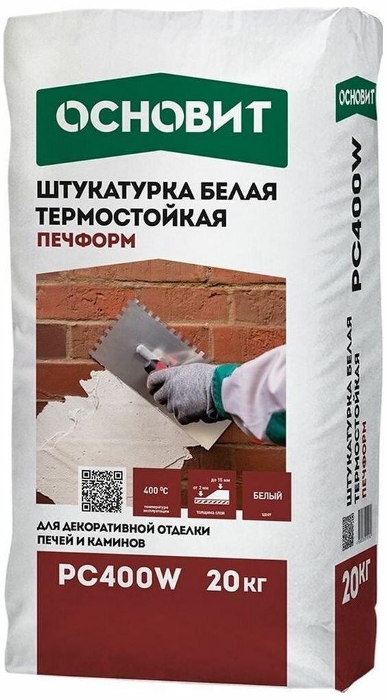 Штукатурка термостойкая ОСНОВИТ Печформ PC400W Белая 20 кг