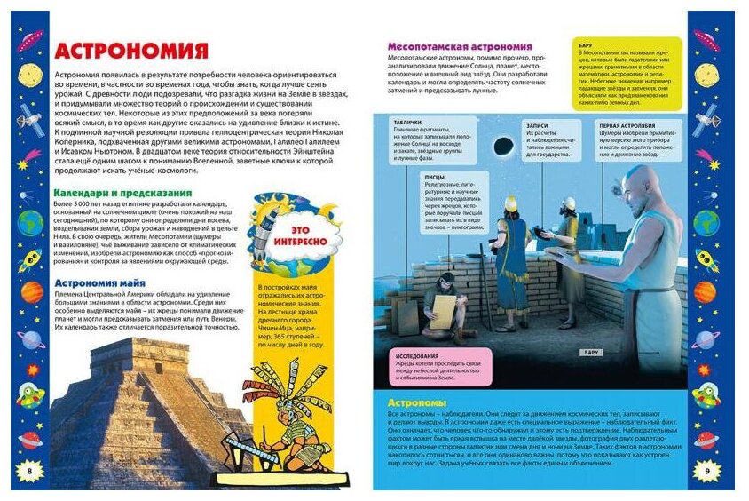 В безоблачную ночь взгляни на небо. Оно усыпано звёздами. Маленькие светящиеся точки в чёрной пустоте привлекали внимание людей с древности. Многие тысячи лет человечество не имело никакого представления о том, что это там на небе: из чего оно состоит, как оно устроено. Люди могли лишь наблюдать и делать предположения. Познание космоса - одна из самых захватывающих историй, какую мы знаем. Наука, изучающая космос, называется астрономией. Она прошла длинный путь от составления календарей землепашцев до запуска межпланетных космических станций. Чем точнее и совершеннее приборы наблюдения за звёздами и планетами, тем больше учёные узнают о Вселенной. После того, как люди начали запускать в космос телескопы и научные зонды, астрономия каждый год делает по несколько важных открытий. Эта книга о том, как человеческое любопытство, тяга к знаниям, развитие астрономии и техники, математики и физики, мужество первооткрывателей шаг за шагом приближали людей к пониманию строения Вселенной.