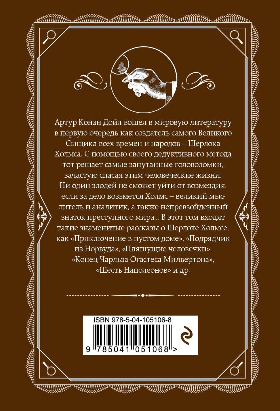Артур Конан Дойл вошел в мировую литературу в первую очередь как создатель самого Великого Сыщика всех времен и народов - Шерлока Холмса. C помощью своего дедуктивного метода тот решает самые запутанные головоломки, зачастую спасая этим человеческие жизни. Ни один злодей не сможет уйти от возмездия, если за дело возьмется Холмс - великий мыслитель и аналитик, а также непревзойденный знаток преступного мира.В этот том входят такие знаменитые рассказы о Шерлоке Холмсе, как "Приключение в пустом доме", "Подрядчик из Норвуда", "Пляшущие человечки", "Конец Чарльза Огастеса Милвертона", "Шесть Наполеонов" и др.