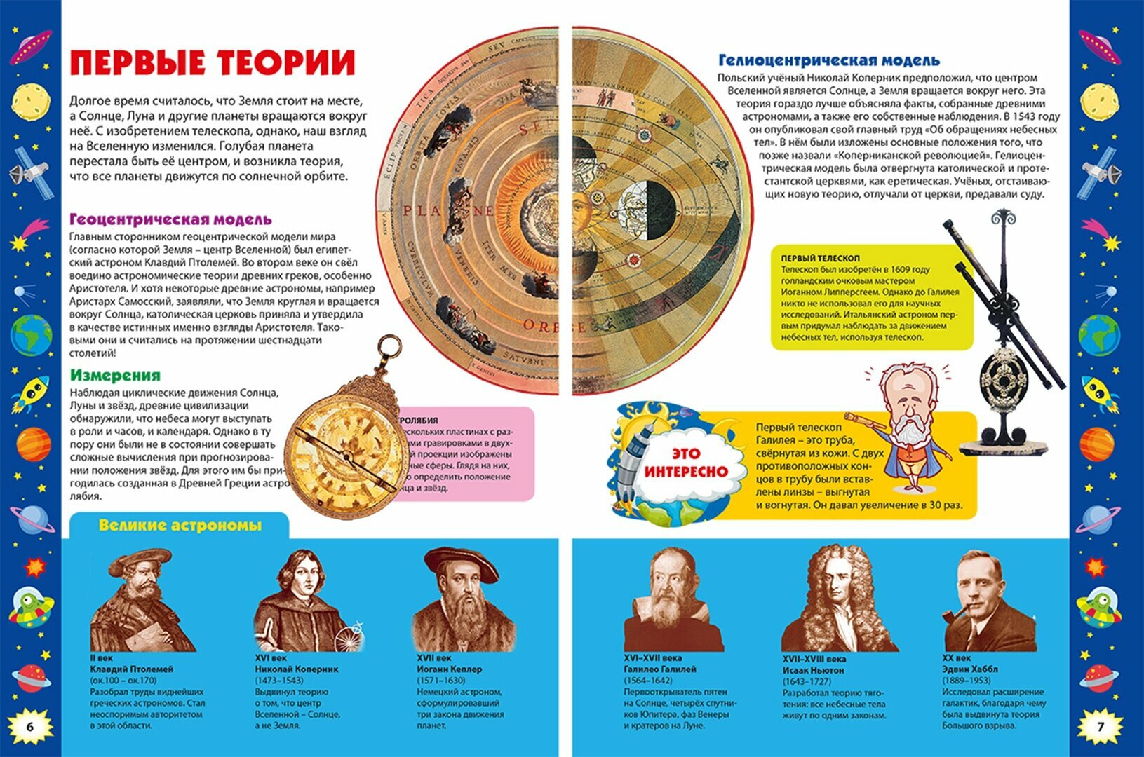 В безоблачную ночь взгляни на небо. Оно усыпано звёздами. Маленькие светящиеся точки в чёрной пустоте привлекали внимание людей с древности. Многие тысячи лет человечество не имело никакого представления о том, что это там на небе: из чего оно состоит, как оно устроено. Люди могли лишь наблюдать и делать предположения. Познание космоса - одна из самых захватывающих историй, какую мы знаем. Наука, изучающая космос, называется астрономией. Она прошла длинный путь от составления календарей землепашцев до запуска межпланетных космических станций. Чем точнее и совершеннее приборы наблюдения за звёздами и планетами, тем больше учёные узнают о Вселенной. После того, как люди начали запускать в космос телескопы и научные зонды, астрономия каждый год делает по несколько важных открытий. Эта книга о том, как человеческое любопытство, тяга к знаниям, развитие астрономии и техники, математики и физики, мужество первооткрывателей шаг за шагом приближали людей к пониманию строения Вселенной.
