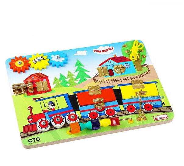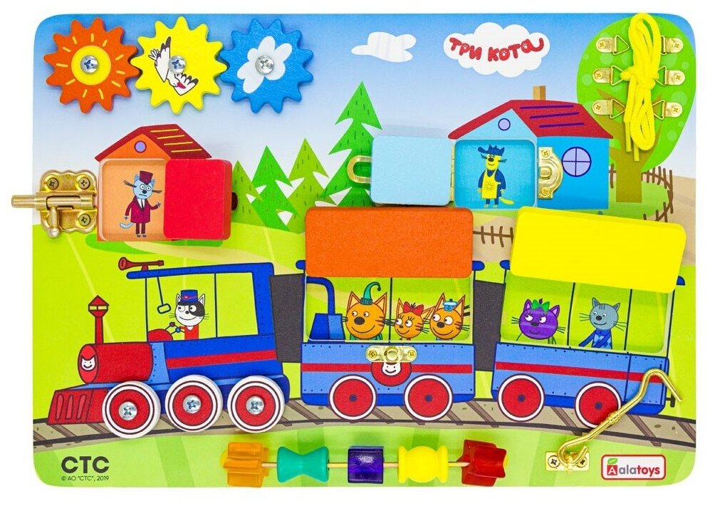 Деревянные игрушки Alatoys 102ALLA Бизиборд ТРИ КОТА "Паровозик"