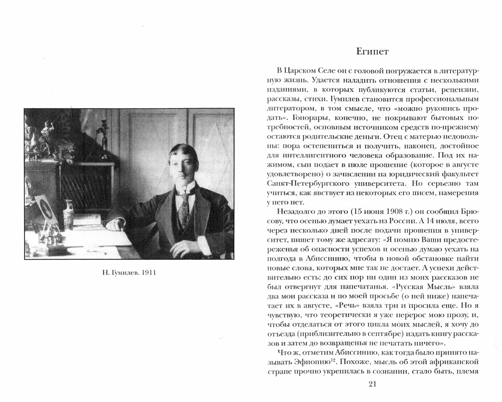 В жизни Николая Гумилева было три главных дела: поэзия, Африка и война. Эти занятия неразрывно переплелись в его судьбе и творчестве. Он трижды посетил Эфиопию, один раз совершил полугодовое путешествие в эту далекую страну с научными целями по заданию Музея Антропологии и Этнографии Российской Академии наук. Множество стихотворных и прозаических произведений одного из самых ярких представителей Серебряного Века русской поэзии навеяны впечатлениями, полученными во время путешествий по африканскому континенту. В книге подробно рассказывается о том многом, связанном с Африкой, что определило личность и жизненный путь поэта.