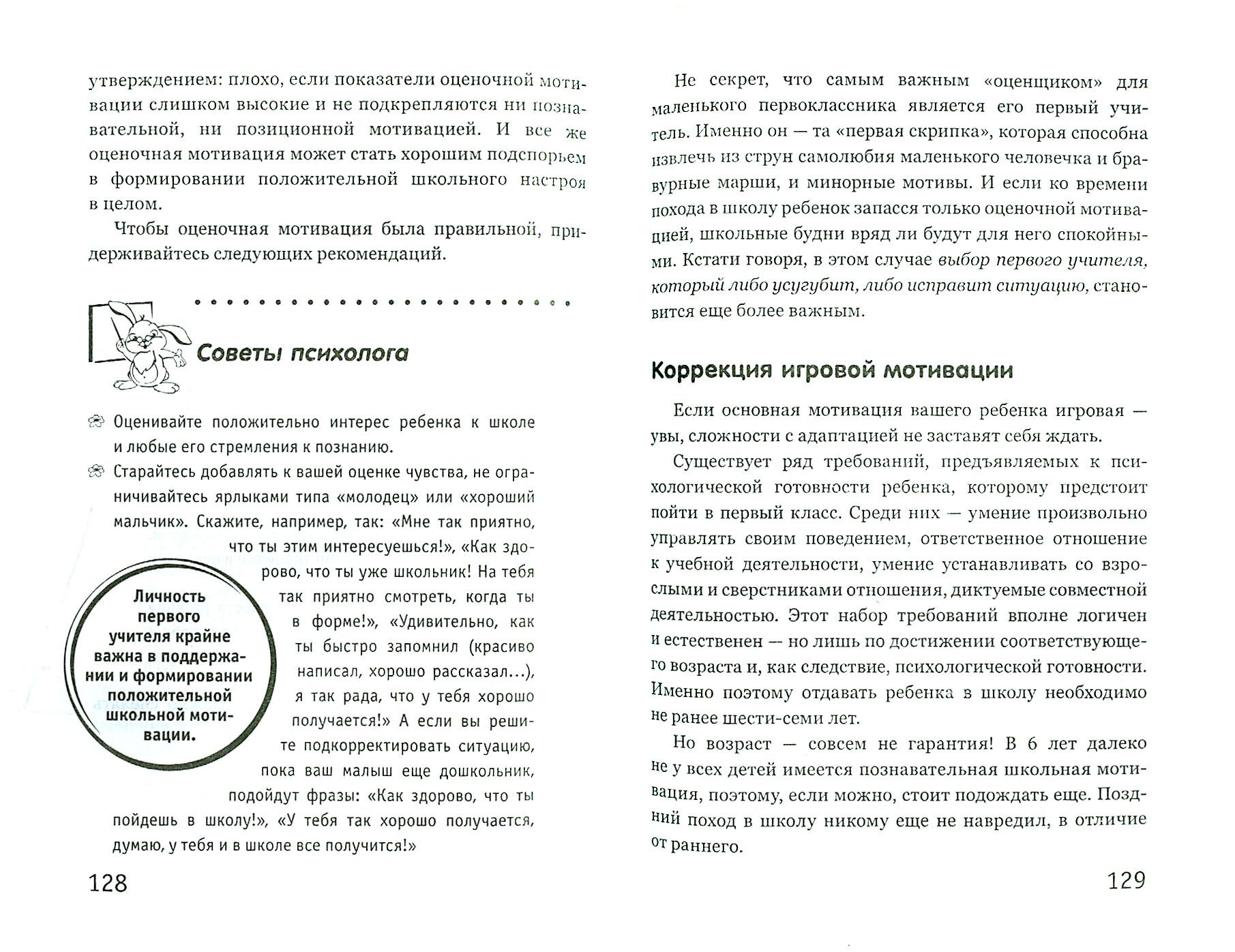 Мне эта книга попалась случайно на глаза в детской библиотеке, пока сын-первоклассник выбирал себе, что почитать. Я удивилась находке среди детской литературы, и, полистав её, заинтересовалась, найдя в доступном лёгком изложении ответы на давно волновавшие меня вопросы. Конечно, взяла домой почитать. Открыла для себя многочисленные важные нюансы детского восприятия, точнее я их знала, получив когда-то пед.образование, но в повседневной суете перестала уделять этому должное внимание. А эта книга минимумом теории и максимумом практических рекомендаций заставляет задуматься и пересмотреть свои "взрослые" взгляды на детские капризы, необъяснимые нежелания и протесты. Здесь в компактной форме собраны и тесты, определяющие успешность школьной мотивации, и тренинги на разрешение конфликтных ситуаций, и даже сказки, помогающие налаживанию межличностных отношений маленьких школьников, и рекомендации по наработке техники чтения и многое другое. Я поняла, что она еще не раз мне пригодится при общении с моими детьми, приобрела её для личной библиотеки, тем более за такую умеренную цену.