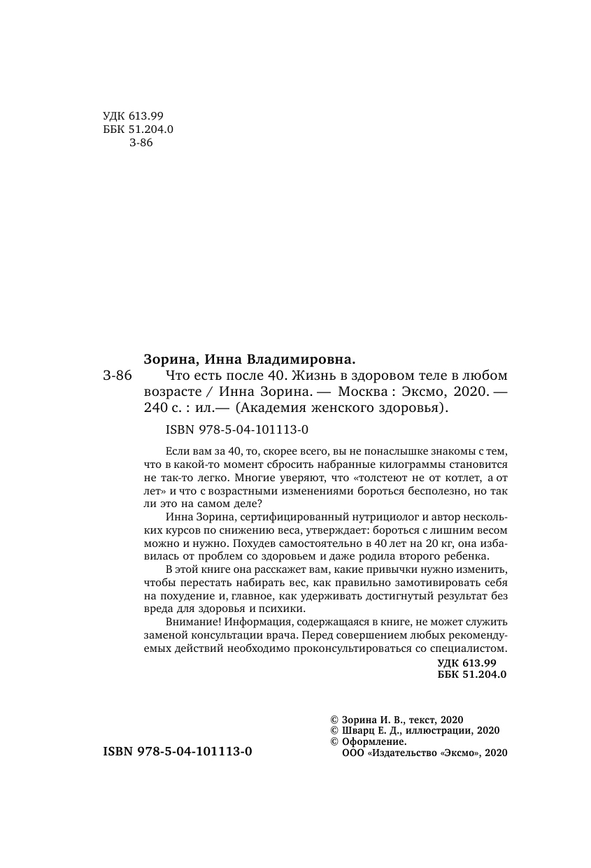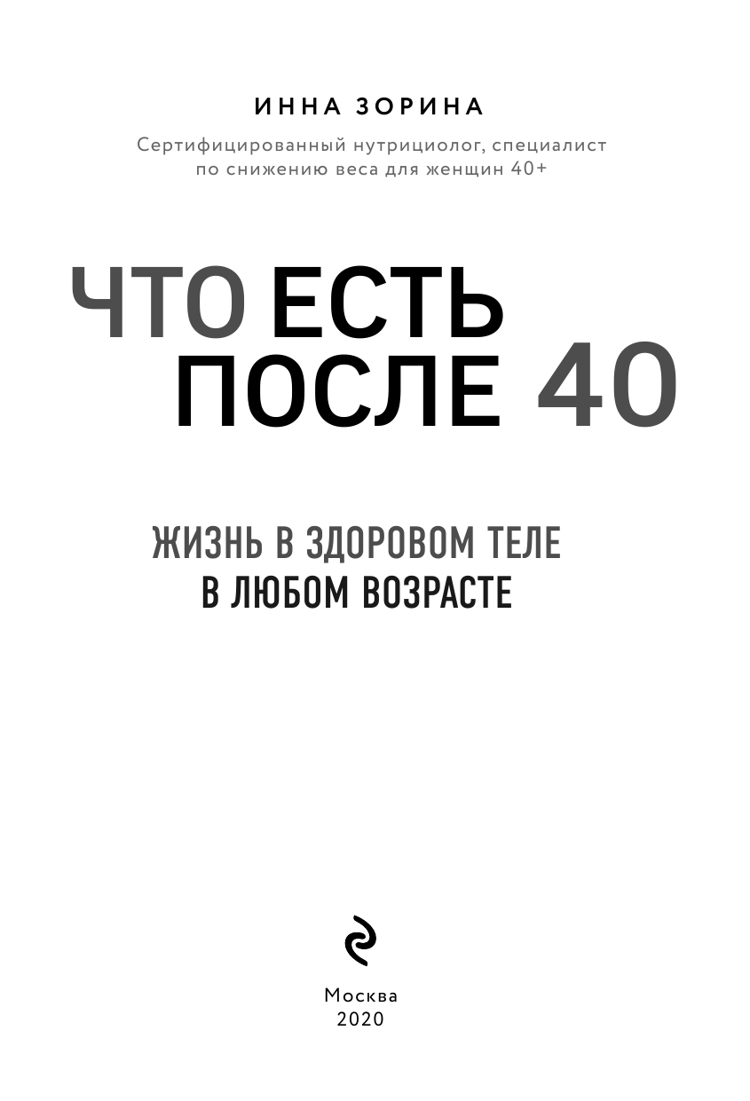 Что есть после 40. Жизнь в здоровом теле в любом возрасте (Зорина Инна Владимировна); ООО "Издательство "Эксмо", 2019