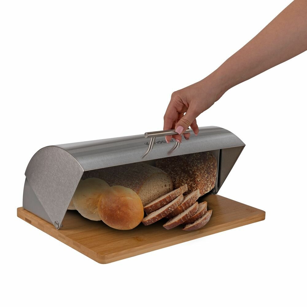 Хлебница позволяет сохранить хлеб в течении длительного периода времени, сохраняя его свежим и хрустящим. Практичная крышка плавно открывается и является достаточно герметичной. Для дополнительной свежести можно положить внутрь хлебницы кусок яблока или немного соли.