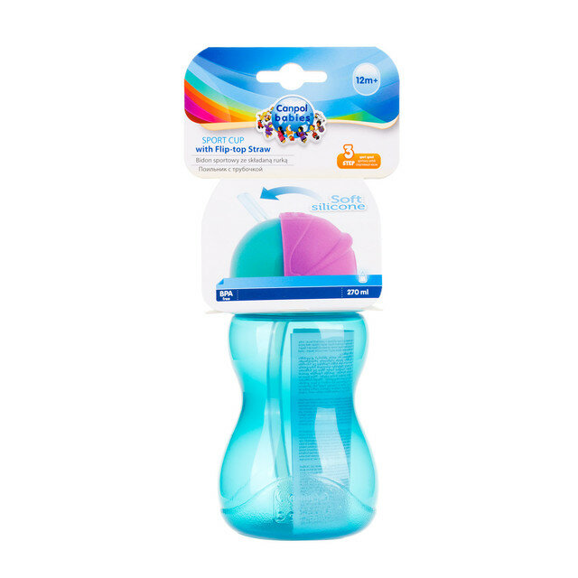 Поильник детский Canpol babies серии SportCup с силиконовой трубочкой идеально подойдет для детей, которые уже научились пить самостоятельно. Практичный красочный спортивный поильник отлично подходит для прогулок и путешествий. • Силиконовая трубочка. Поильник непроливайка оснащен удобной силиконовой трубочкой. • Откидная крышка. Практичная откидная крышка защищает трубочку от загрязнения. • Подвижная часть крышки. Подвижная часть крышки позволяет легко и удобно спрятать трубочку, предотвращая неконтролируемое проливание напитка. • Контурная форма. Контурная форма поильника позволяет легко держать его в руках маленького ребенка. • Не содержит Бисфенол А. *Поильник с трубочкой для детей от 12 месяцев. *Поильник с силиконовой трубочкой можно мыть в посудомоечной машине, но без трубочки, т.к. моющие и чистящие вещества могут ее повредить. *Детский поильник можно использовать в микроволновой печи. При подогреве в микроволновой печи, помните, что поильник должен быть открыт. Перед первым и последующими применениями промойте поильник детский в теплой воде с мягким моющим средством. Залейте кипятком для дезинфекции, но не кипятите. Жесткая вода, фруктовые соки или чай могут оставлять на трубочке осадок или обесцвечивать ее, но это не влияет на свойства трубочки. Также поильник не предназначен для горячих и газированных напитков. *Разработано в Польше. *Бренд Canpol babies уже более 30 лет помогает мамам во всем мире растить своих малышей здоровыми и счастливыми. В ассортименте бренда более 500 позиций в категориях Аксессуары для кормления, пустышки, поильники и другие.