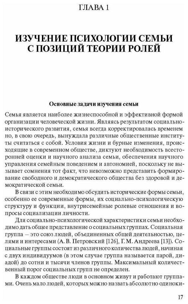 Задача настоящей монографии - разработка социально-психологической концепции ролевого подхода для изучения проблем, структуры, функций и динамики семьи. Были организованы и проведены методологические, теоретические и эмпирические исследования семейной динамики. В данном исследовании ролевой подход дополнен рядом гипотез и фактически положено начало новому социально-психологическому направлению в области исследования семьи. На основании анализа результатов практических исследований семьи с использованием теории ролей выявлена статусно-ролевая структура современной нуклеарнойсемьи, описаны нормальная, здоровая (адаптативная) и патогенная (дезадаптативная) роли. Выявлены первичные отношения в семье, в том числе первичные ролевые взаимоотношения членов семьи. С этой целью использованы нарративные, опросные, социометрические и социально-психологические методы исследований, а также проведены методологический и теоретический анализ эмпирического материала, накопленного в научной психологии.