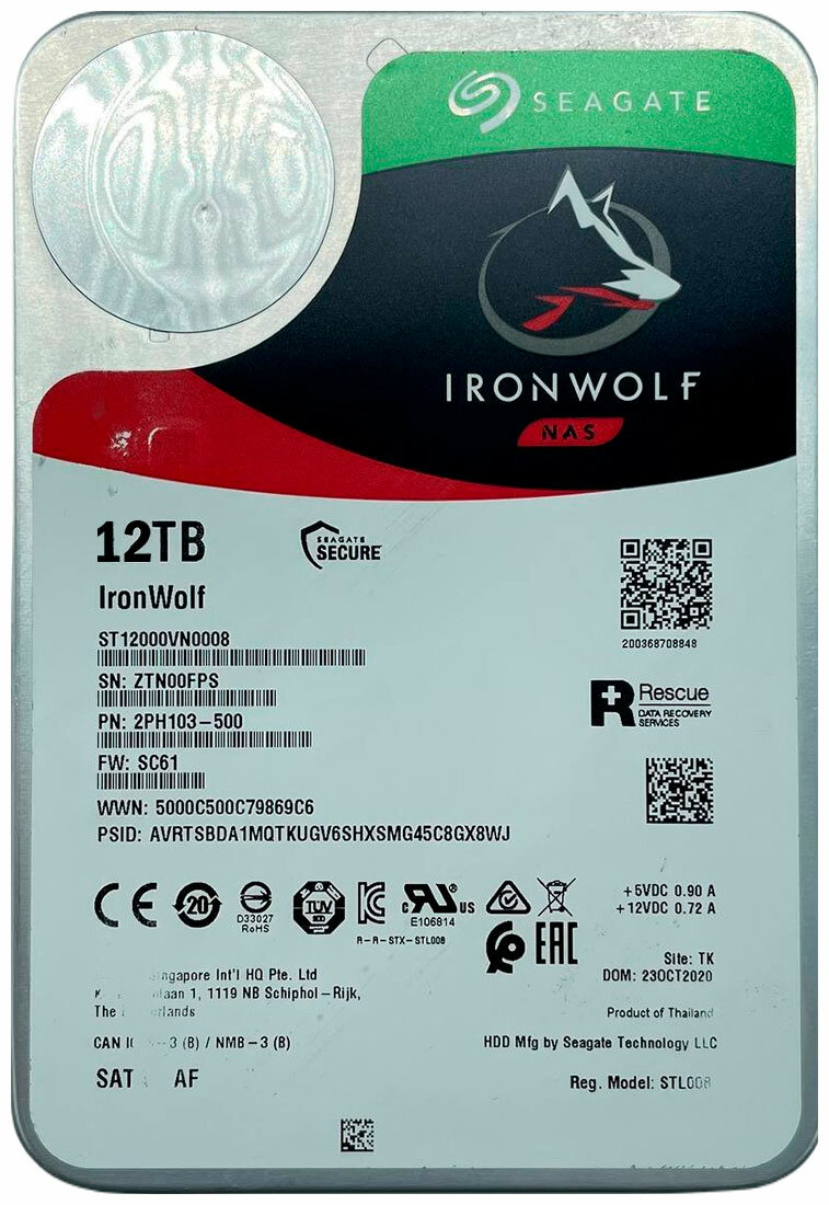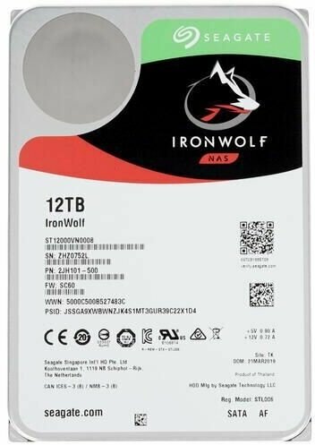 Жесткий диск SEAGATE Ironwolf 12Тб HDD SATA III 3.5" ST12000VN0008