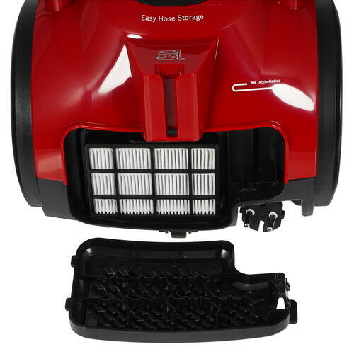 Пылесос Bosch выполнен в красном корпусе и использует металлическую трубу всасывания. Наряду со шнуром длиной 6 м она повышает радиус действия до 9 м. Большие колеса, ручка и облегченная конструкция пылесоса обеспечивают его легкое перемещение по разным поверхностям. Высокая эффективность прибора обусловлена применением технологии AirCycle, которая образует мощные вихревые потоки. Циклонная технология отсеивает частицы пыли и мусора в контейнер, создавая центробежную силу внутри. Для сбора мусора Bosch использует съемный контейнер объемом 1.5 л. Даже при заполнении контейнера достигается высокая эффективность уборки. Обладая мощностью 700 Вт, устройство фильтрует воздух перед его попаданием обратно в помещение. Для экономии пространства и удобства хранения прибора его шнур сматывается автоматически. Эффективность уборки разных поверхностей увеличивает комплект насадок. Это двухрежимная насадка для пола, насадка для мебели, щелевая насадка, которая поможет очистить от мусора и пыли углы, поверхность под кроватью и диваном, плинтусы.