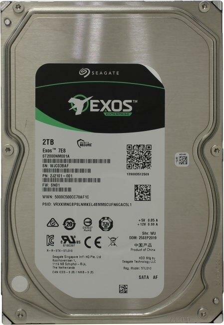 Жесткий диск SEAGATE Exos 7E8 2Тб HDD SATA III 3.5" ST2000NM001A