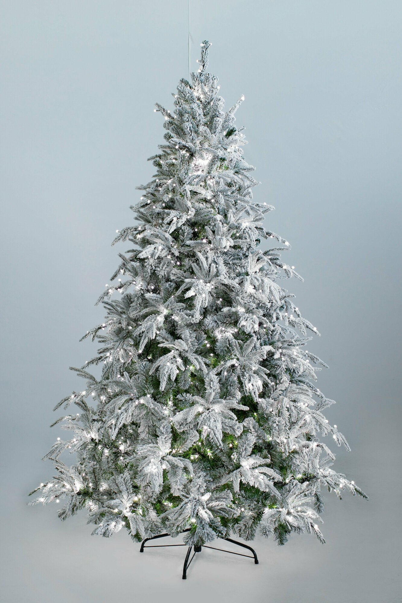 Crystal Trees Искусственная Ель Маттерхорн заснеженная с вплетенной гирляндой 120 см
