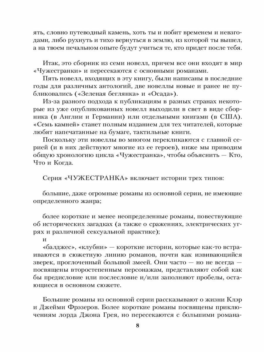 Семь камней - это семь историй, раскрывающих неизвестные страницы судеб уже так полюбившихся нам героев мира Чужестранки.