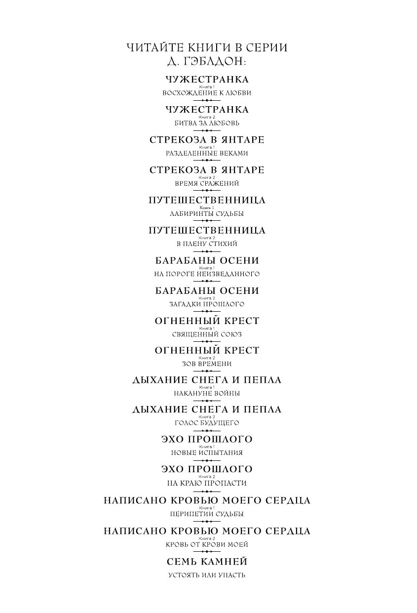 Сага о великой любви Клэр Рэндолл и Джейми Фрэзера завоевала сердца миллионов читателей во всем мире. Ради такой любви стоит жить и рисковать жизнью.