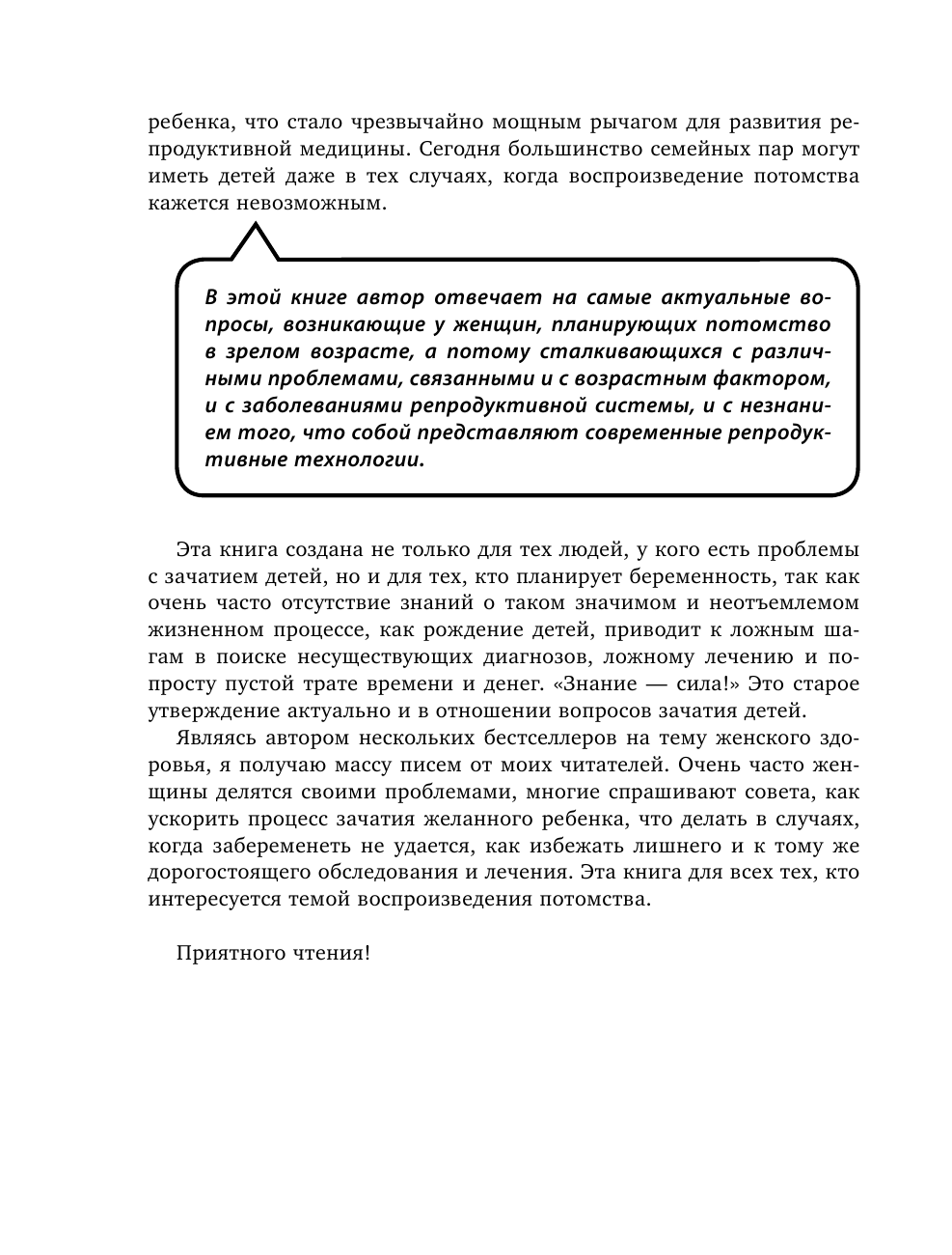 В этой книге Елена Петровна Березовская, автор бестселлеров "9 месяцев счастья" и "Это всё гормоны!", расскажет о том, какой возраст наиболее благоприятен для наступления беременности; какие факторы бесплодия существуют и как их избежать; сколько времени требуется для зачатия ребенка и, конечно же, что делать, если вы уже пытались забеременеть, но ничего не получилось. Она поможет преодолеть сомнения и станет вашим другом и советчиком на пути к рождению ребенка!