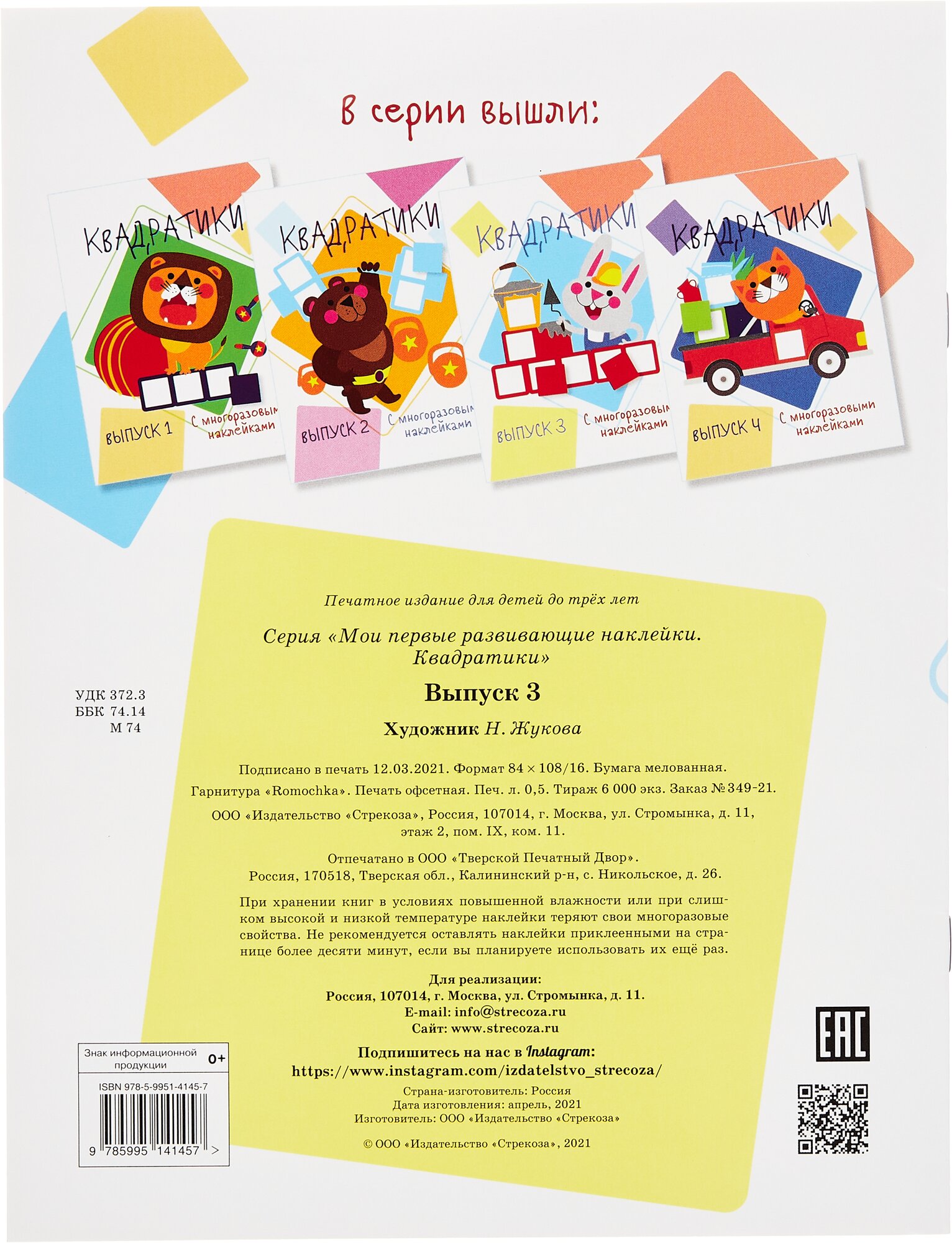 | Серия | Мои первые развивающие наклейки. Квадратики |