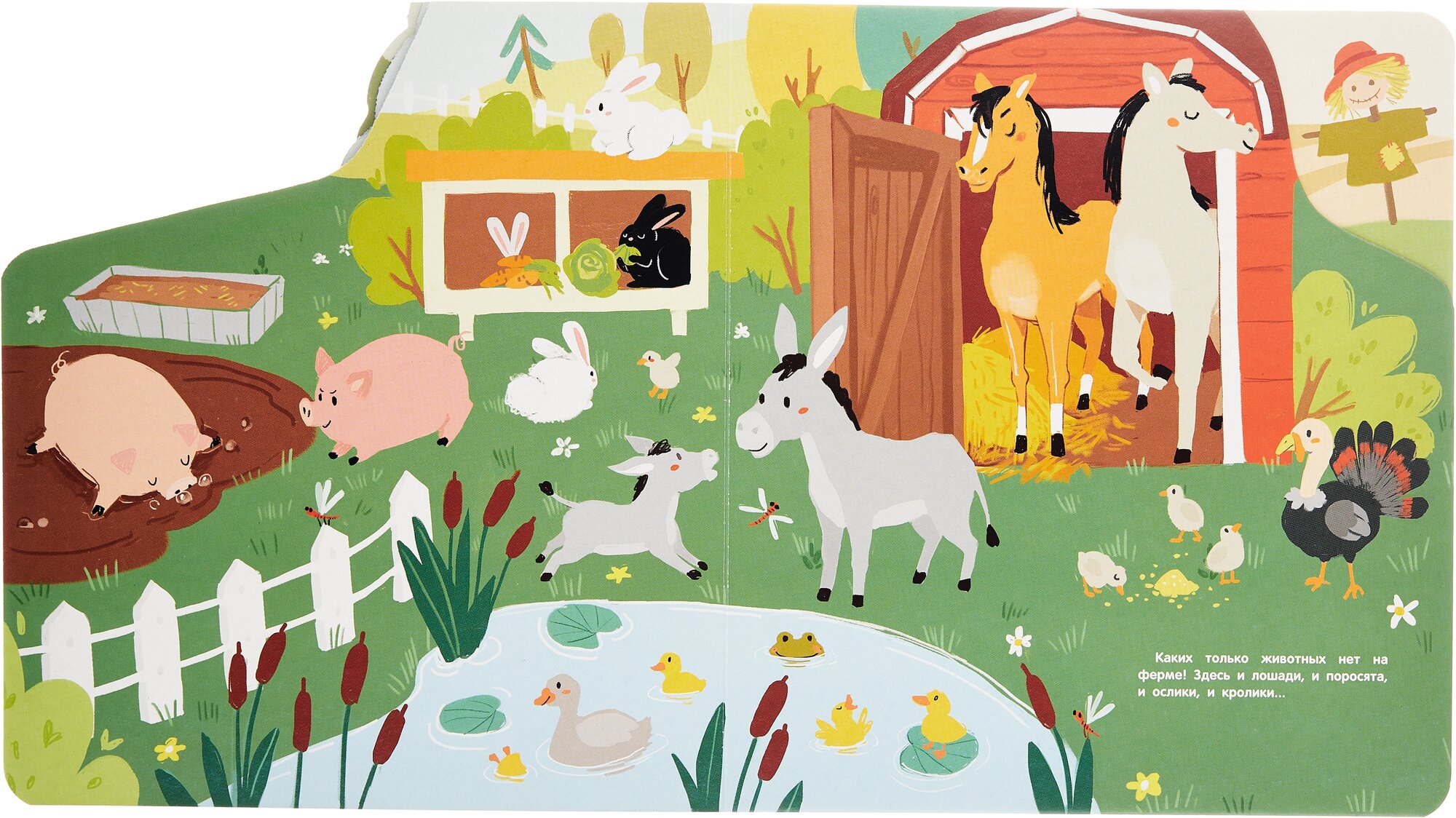 Эта книжка расскажет вашему малышу о том, как проходит день на ферме. Кто раньше всех встаёт? Кто пасётся на лугу? Кто охраняет дом? Какая машина помогает убирать урожай? Малыш узнает ответы на эти и другие вопросы и сможет рассмотреть яркие иллюстрации.