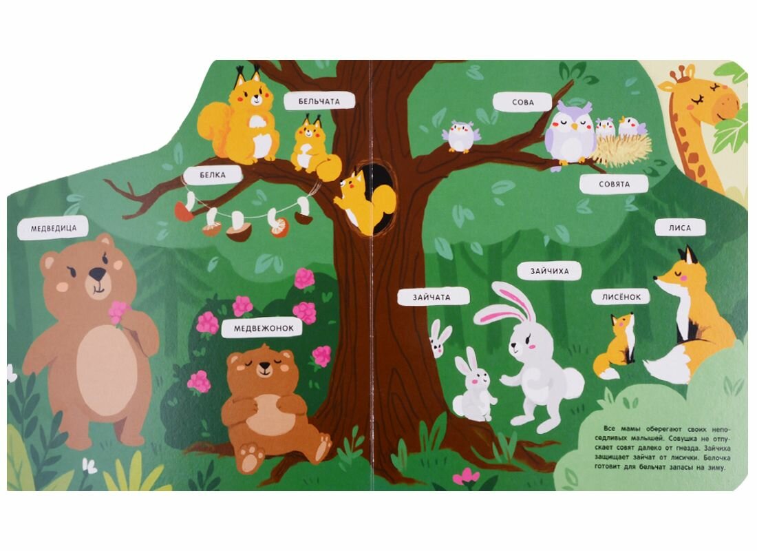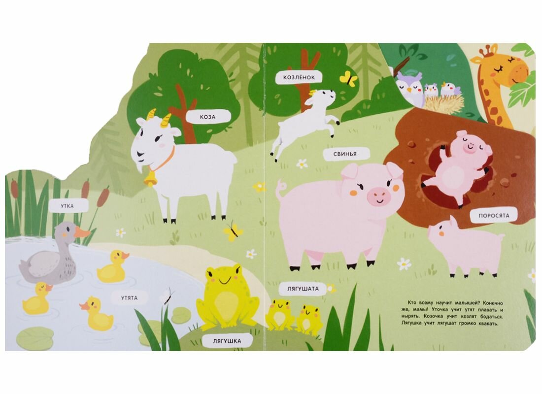 Эта книжка познакомит вашего ребёнка с мамами и их малышами. Он сможет не только запомнить названия животных, но и узнать, чему мамы учат своих малышей и как заботятся о них. А с весёлыми персонажами учиться будет ещё интереснее!