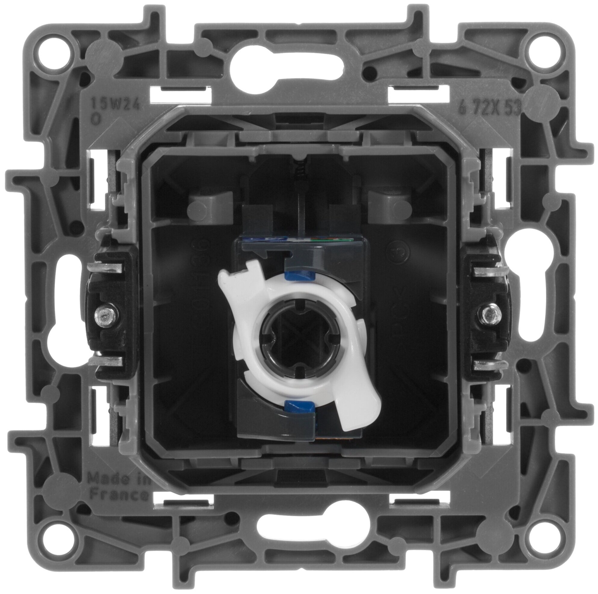 - Острые крепёжные лапки с широким углом раскрытия, обеспечивают надёжную фиксацию в монтажной коробке. Комплектуется инструкцией.