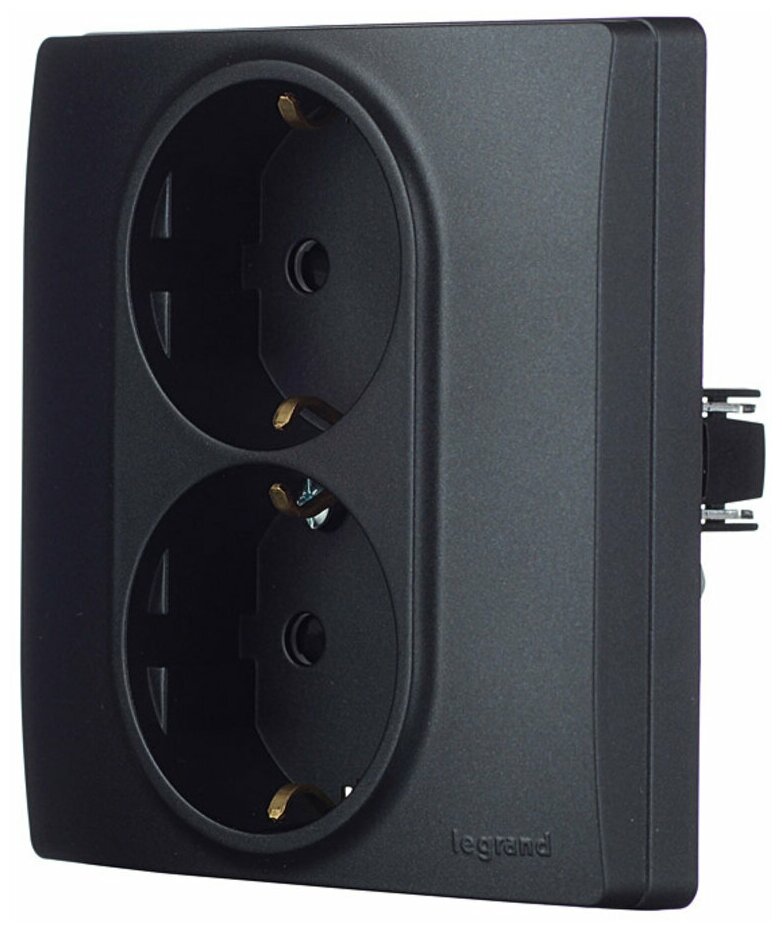 Розетка Legrand 2-м СП Etika защитные шторки с заземлением авт. в сборе антрацит Leg1066 Etika 672633