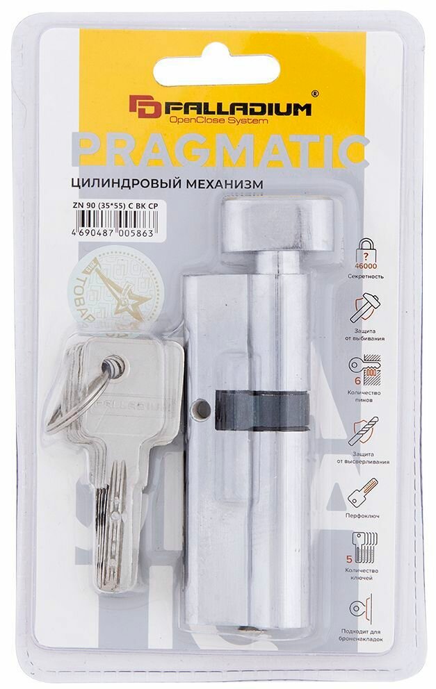 Замок Palladium Цилиндр мех 90 /35x55/ c bk cp