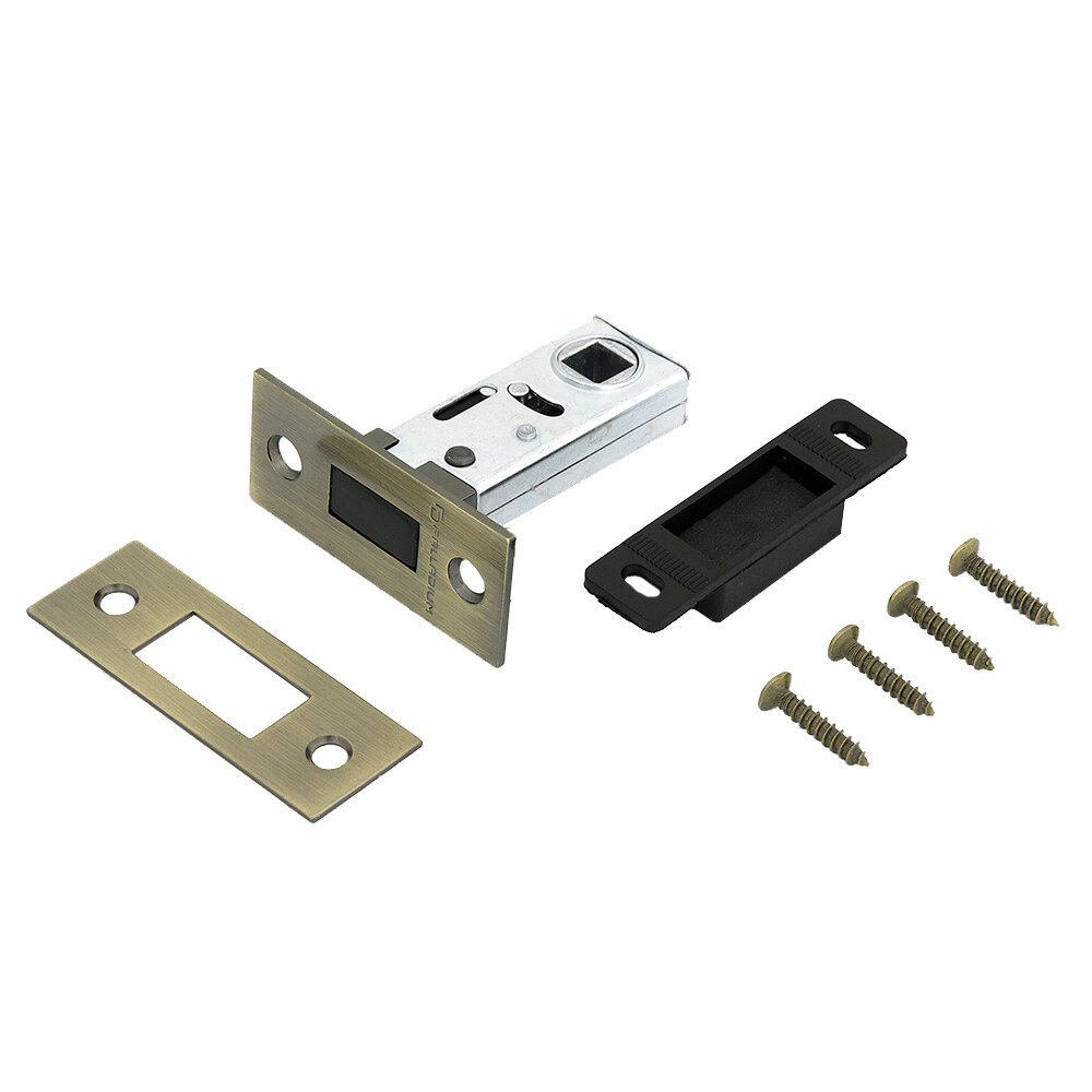 Защелка межкомнатная серии 100 M. Механизм оснащен магнитным пластиковым язычком обеспечивающим мягкое открывание и закрывание двери. Гарантированное количество циклов безотказной работы узлов защелки более 150000. Качество гальванического покрытия подтверждено тестом на устойчивость в камере соляного тумана - более 96 часов. В комплекте поставки: защелка магнитная ответная планка пластиковая вставка под ответную планку шурупы Тип защелки: универсальная (правая/левая) Цвет: античная бронза Упаковка: блистер