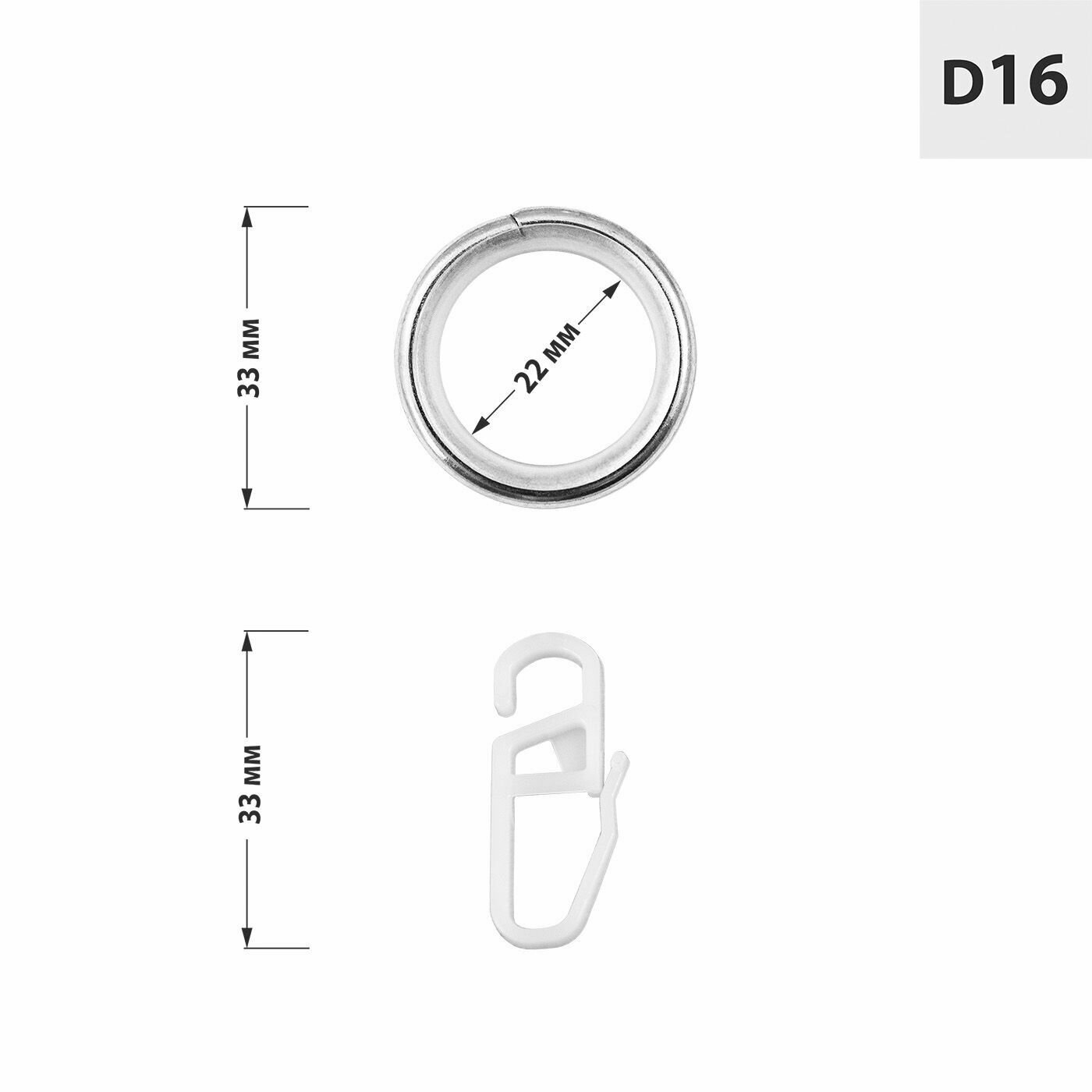Металлические кольца для штор и карнизов с крючками подойдут для карниза с диаметром штанги 16 мм. Пластиковые вставки обеспечивает бесшумное перемещение колец из металла по карнизу. Прозрачная вставка не царапает поверхность гардины и не создает постороннего шума. В комплекте 10 колец цвета шампань с крючками для штор. Кольца изготовлены из цинк-алюминиевого сплава, что делает их лёгкими и обеспечивает более плавный ход по штанге. Внутренний диаметр колец 22 мм, внешний диаметр 33 мм.Пластиковые крючки для штор и тюля, идущие в комплекте, подходят для штор на шторной ленте. При желании крючки для штор можно заменить на другие крючки подобного типа.