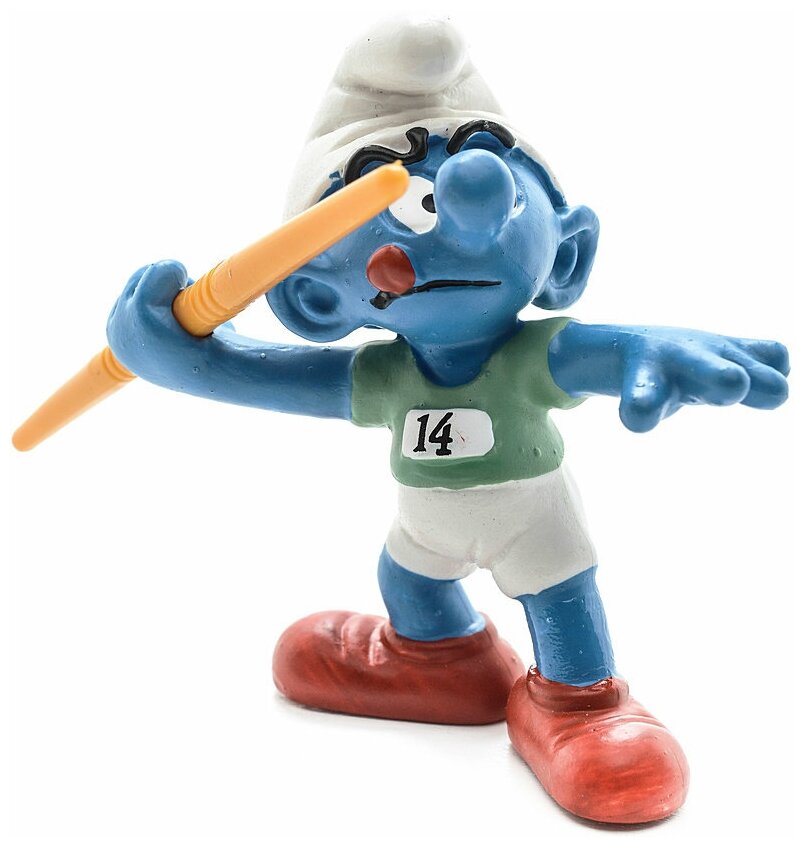 Смурфики – это обаятельные, веселые и очень дружелюбные гномы с синим цветом кожи. Они живут в своей лесной деревне и никогда не скучают.Смурфиков в деревне очень много, причем каждый из них обладает своими магическими способностями и своими талантами. Кто-то изобретает новые устройства и машины, кто-то великолепно готовит, кто-то выращивает овощи, а кто-то рисует или пишет стихи. В свободное время Смурфы любят устраивать спортивные соревнования. Этот гном, например, участвует в турнире по метанию копья.Интересный фактДля спортивных состязаний Портной сшил всем смурфам особую форму с номерами, как на настоящих чемпионатах.
