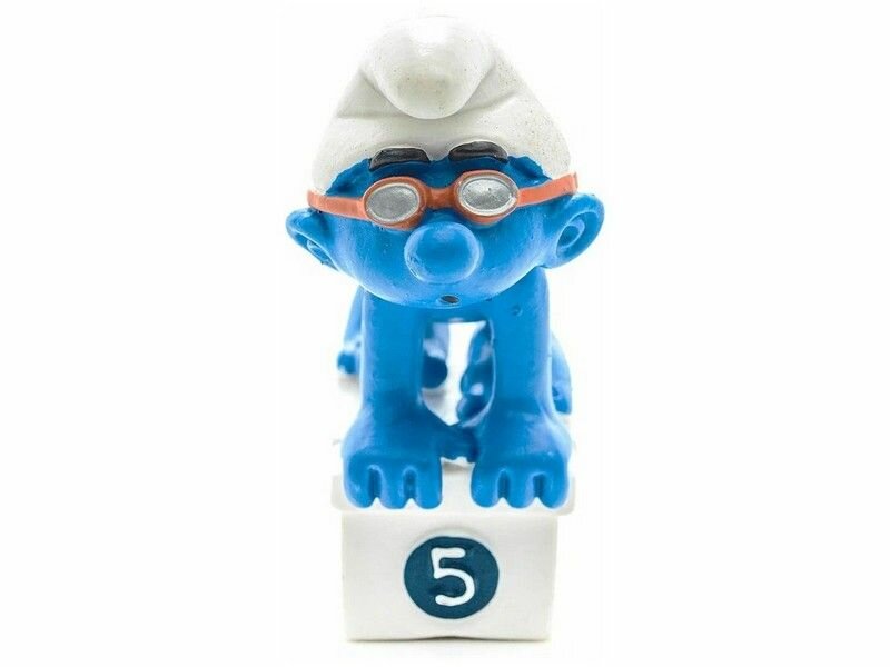 Каждому из нас хорошо известны эти маленькие синие гномы, именуемые Смурфиками. Они дружелюбны, любознательны и невероятно находчивы.Сегодня Смурфы решили заняться спортом. Они такие выдумщики, что каждый раз придумывают что-то новое. Спортивный бег, езда на роликах и коллективный волейбол позади, а значит пришло время поплавать. Для этого гномы соорудили у себя во дворе настоящих бассейн и обзавелись всем необходимым: плавательными костюмами и очками. Этот пловец уже занял место для старта на тумбочке под номером пять.Интересный фактСмурфики очень быстро бегают и плавают, поэтому соревноваться друг с другом им особенно интересно.