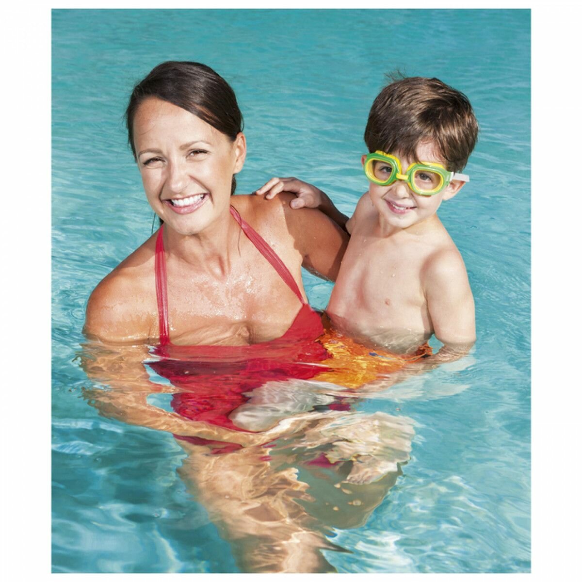 В очках для плавания ребёнок без труда будет ориентироваться под водой. Особенности: мягкие и удобные наглазники; регулируемая переносица; защита от ультрафиолетовых лучей благодаря специальному покрытию. Изделие не содержит латекса.