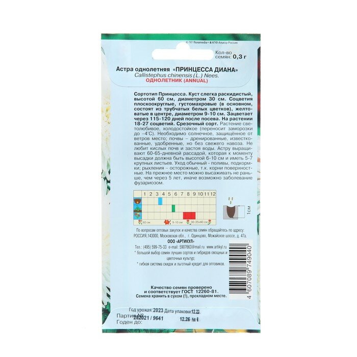 Семена астра Артикул Принцесса Диана 1 уп. Аэлита