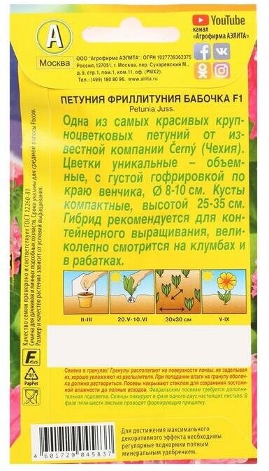 Семена цветов Фриллитуния Бабочка F1 крупноцветковая бахромчатая 10 шт Аэлита